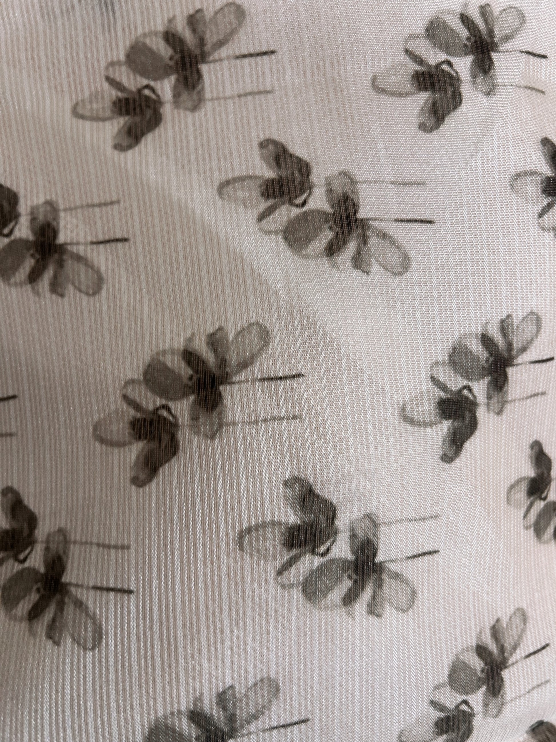 Effortlessly elegant and feather-light, Nayantara – our Handloom Pure Manipuri Kota Silk Saree is a perfect blend of sophistication and comfort. The saree features a subtle ivory base adorned with digital floral prints in grey and black, creating a calm yet chic aesthetic. Its contrasting black crochet lace border adds a modern designer touch, elevating the overall look.