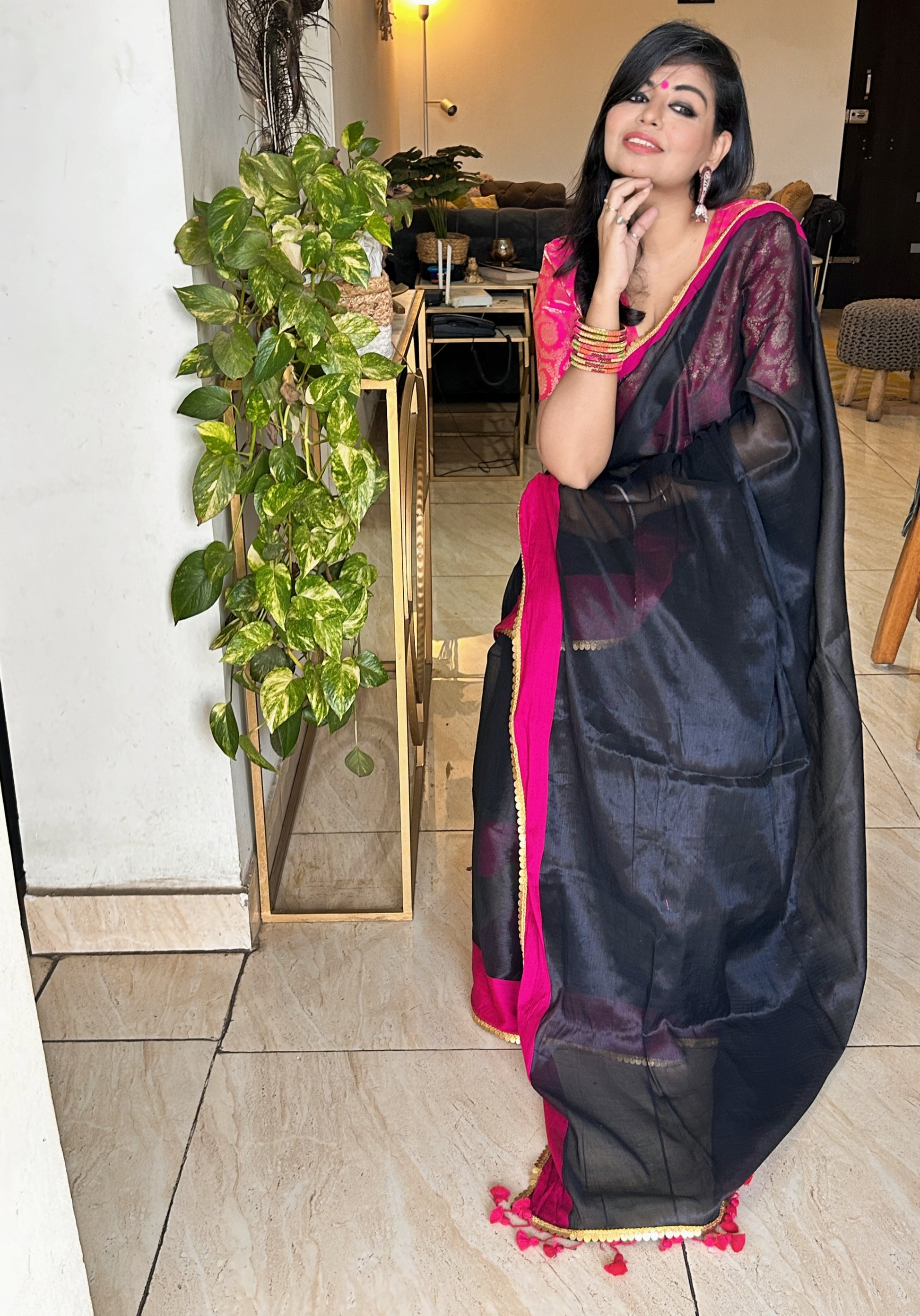 Raniya – Black Bengal Tissue Saree with Rani Border