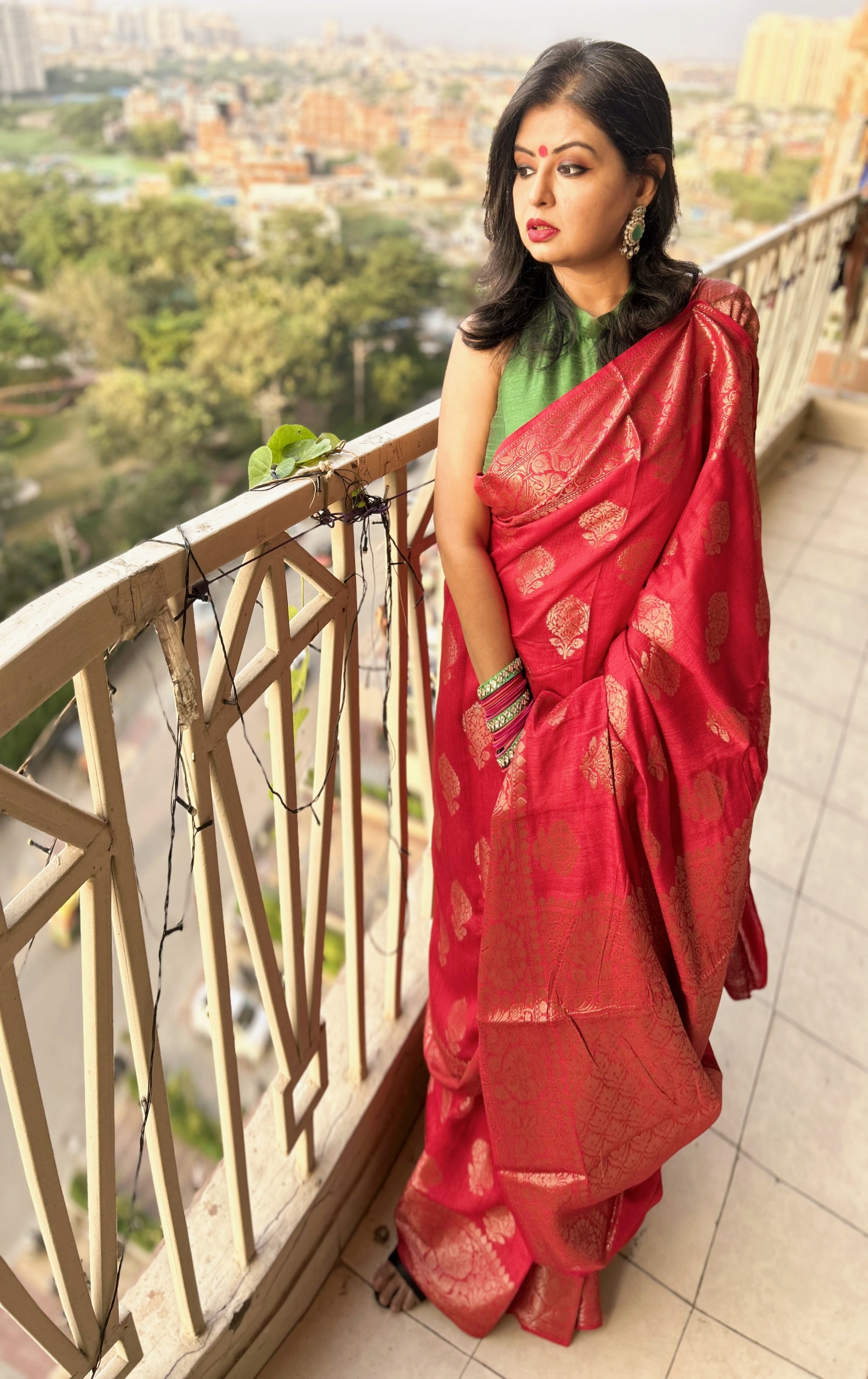 Rooprekha – Pure Moonga Banarasi Silk Saree in Bridal Red with Silkmark